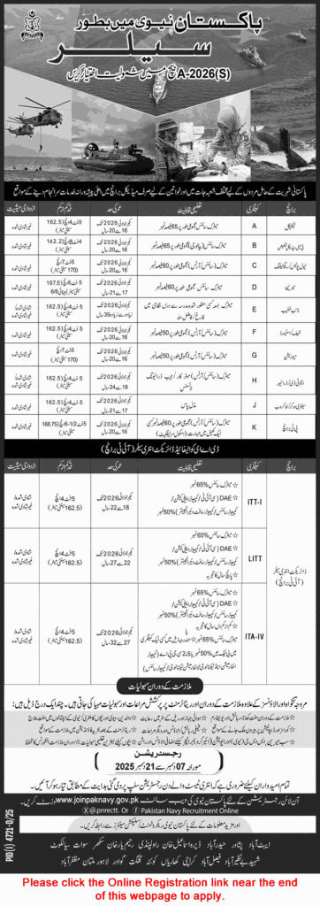 Join Pakistan Navy as Sailor December 2025 Online Registration Join in A-2026 (S) Batch Latest
