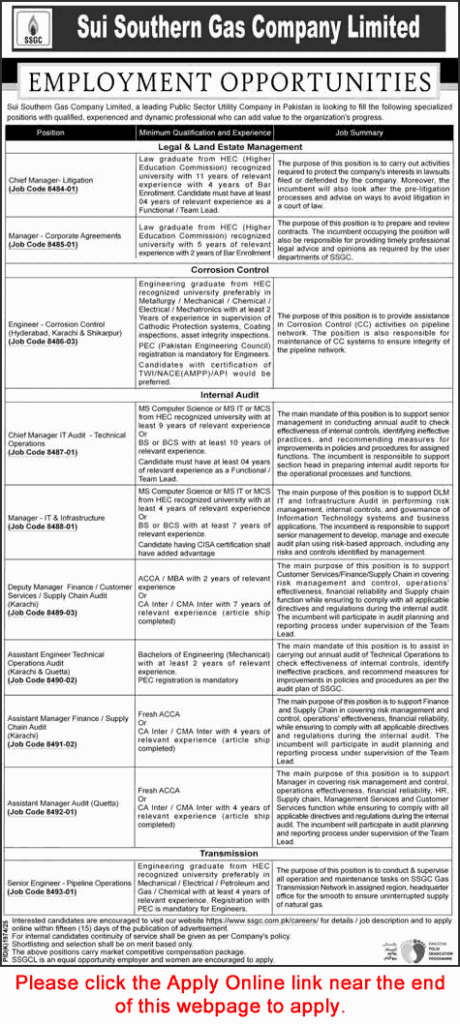 SSGC Jobs December 2025 Apply Online Sui Southern Gas Company Limited Latest